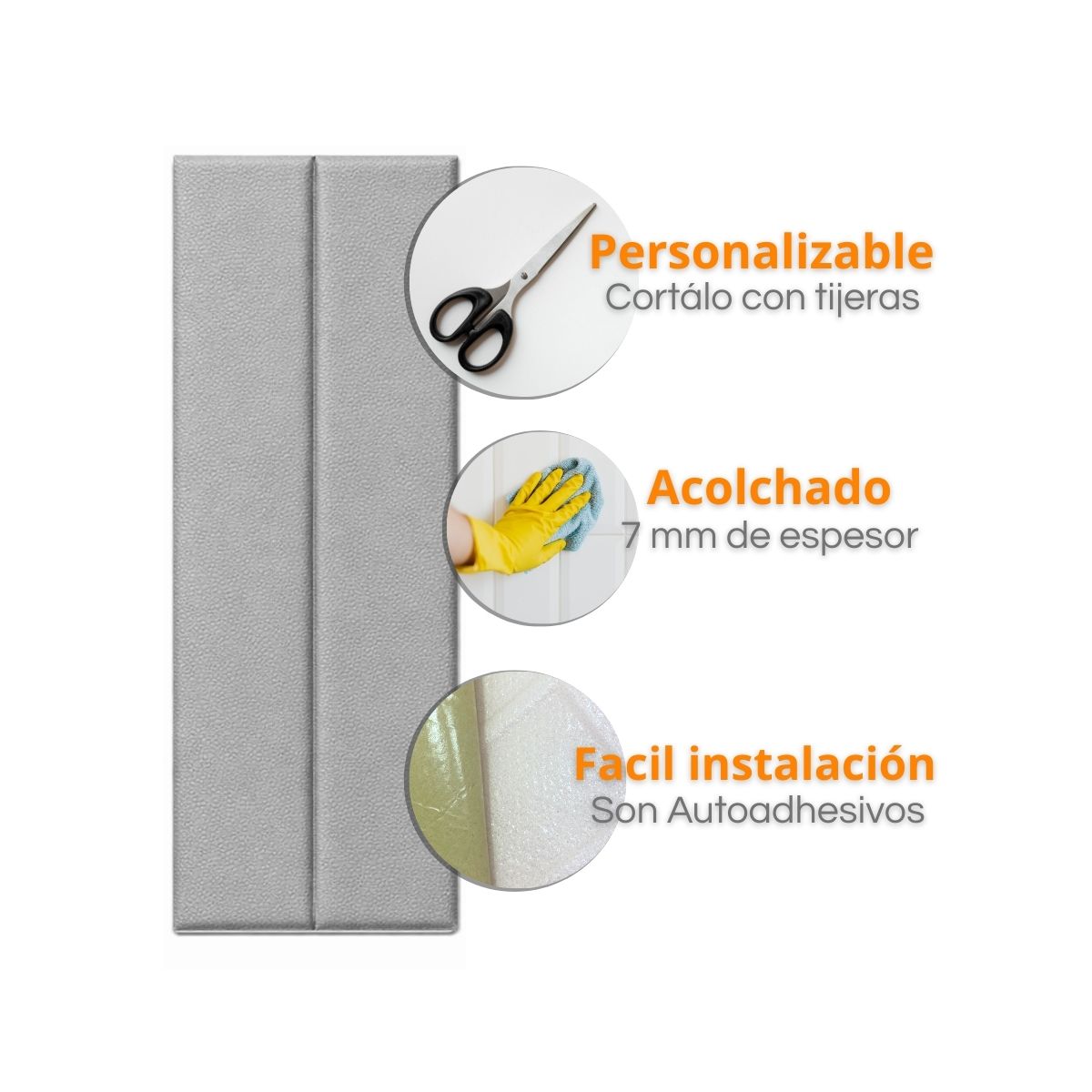 Placa Wall Panel Simil Cuero Gris Autoadhesivo