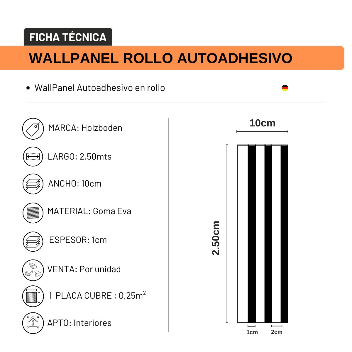 • Medida del rollo: 10cm de ancho × 2.50mts de largo